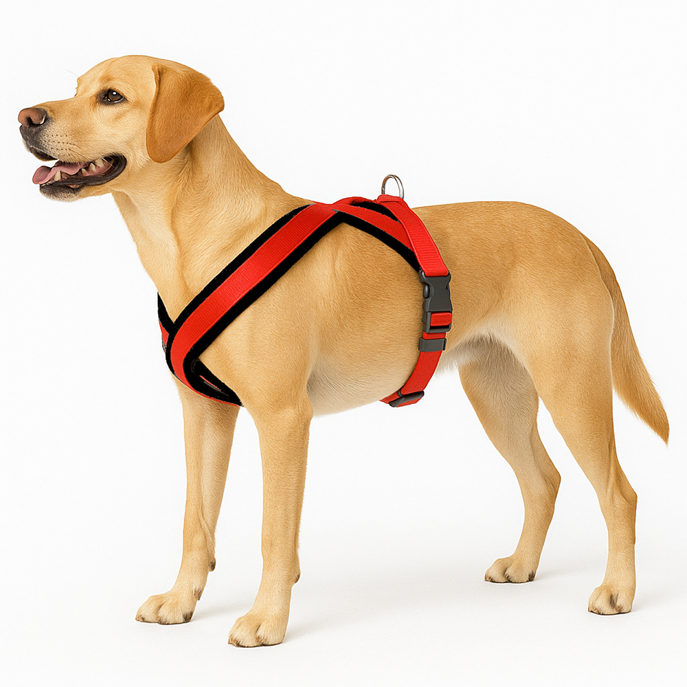 Fabricado con cinta de nylon de alta calidad. Material sintético negro acolchado de 8mm de espesor. Hebilla y reguladores de plástico de resina de acetal. Medialuna de hierro soldada y niquelada.