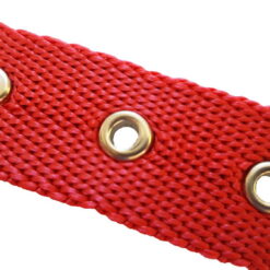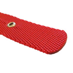 Fabricado con cinta de polipropileno de alta calidad, hebilla inyectada de zamak niquelada, ojalillos de hierro niquelados y medialuna de hierro soldada y niquelada.